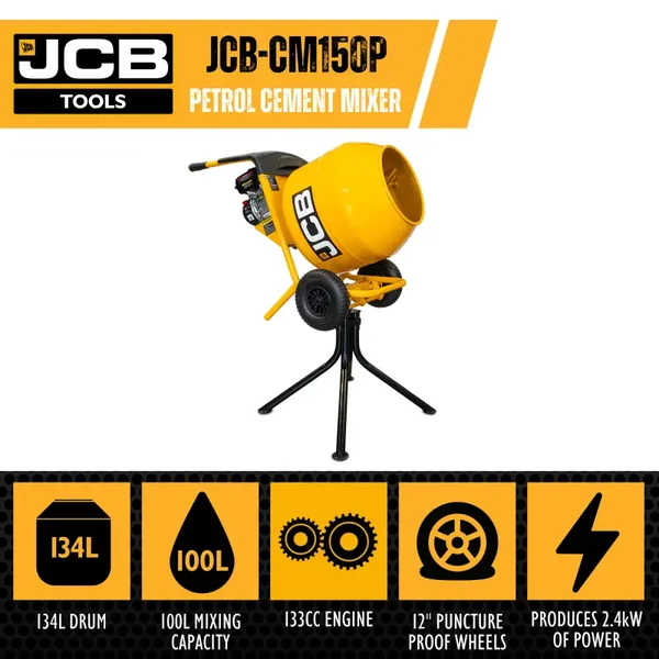 - Betrouwbare 133cc JCB-motor: produceert 2,4 kW vermogen om sterke en samenhangende betonmengsels te creëren voor kleine tot middelgrote bouwprojecten