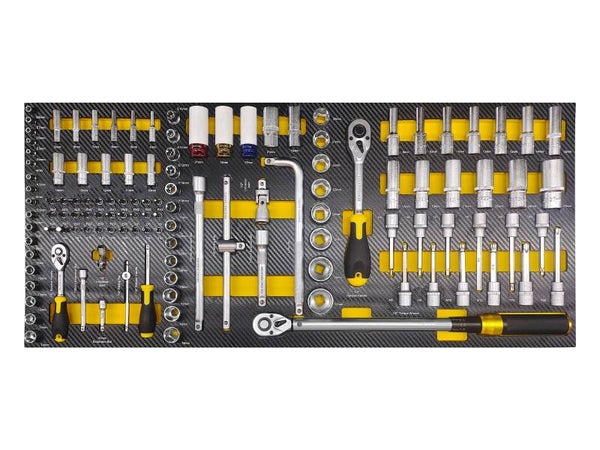 De wagen is uitgerust met meerdere ruime laden, die volledig gevuld zijn met hoogwaardig en duurzaam gereedschap. Hierdoor heb je al je essentiële tools overzichtelijk geordend en altijd direct binnen handbereik. De praktische indeling zorgt ervoor dat elk stuk gereedschap zijn eigen vaste plek heeft, wat bijdraagt aan een efficiënte en georganiseerde werkomgeving.